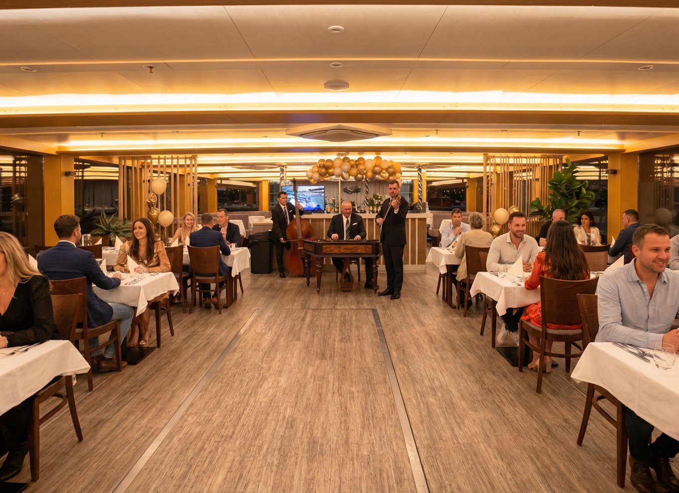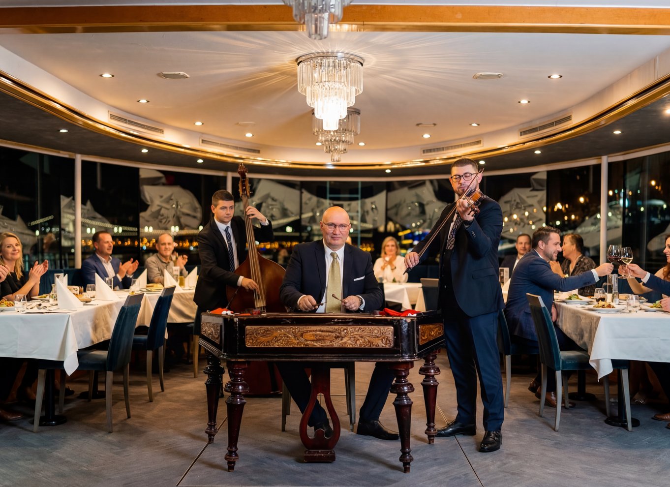 În timp ce iei masa, lasă-te cuprins de cultura maghiară autentică, cu un spectacol folcloric live și muzică tradițională care surprinde spiritul Budapestei. Ritmul blând al Dunării și luminile orașului creează o atmosferă cu adevărat romantică.